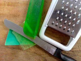 Sabunun yarısıdan fazle rendeleyin. Bu parçaları tutkal görevi alacaklar. Diğer sabun parçaları ufacık kesin.