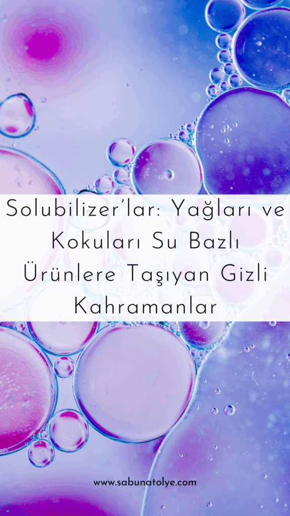 Bir tonik, deodorant spreyi ya da oda kokusu hazırlamaya çalışırken yüzeyde yüzen yağ damlacıkları görürsünüz. İşte bu sorunu çözmenin yolu solubilizer kullanmaktır.